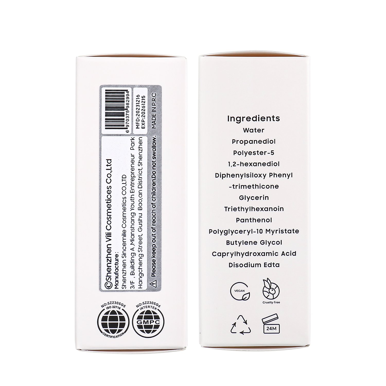 A nature-inspired, lightweight liquid spray that is sweat-proof, mask-proof, and controls oil. Customizable with your logo.